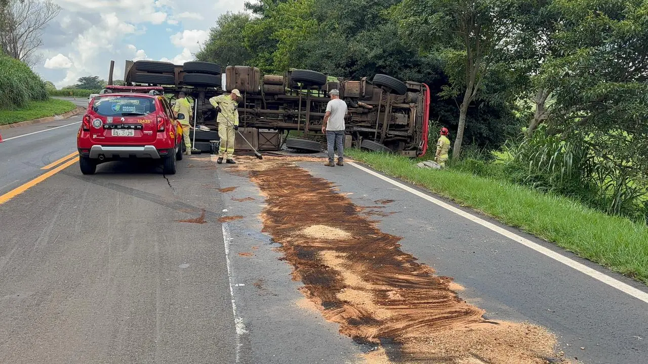 Um tombamento de caminhão foi registrado por volta das 12h40 desta sexta-feira (29), no perímetro urbano da BR-369, em Cornélio Procópio. O acidente mobilizou equipes do Corpo de Bombeiros, que realizaram o atendimento no local.