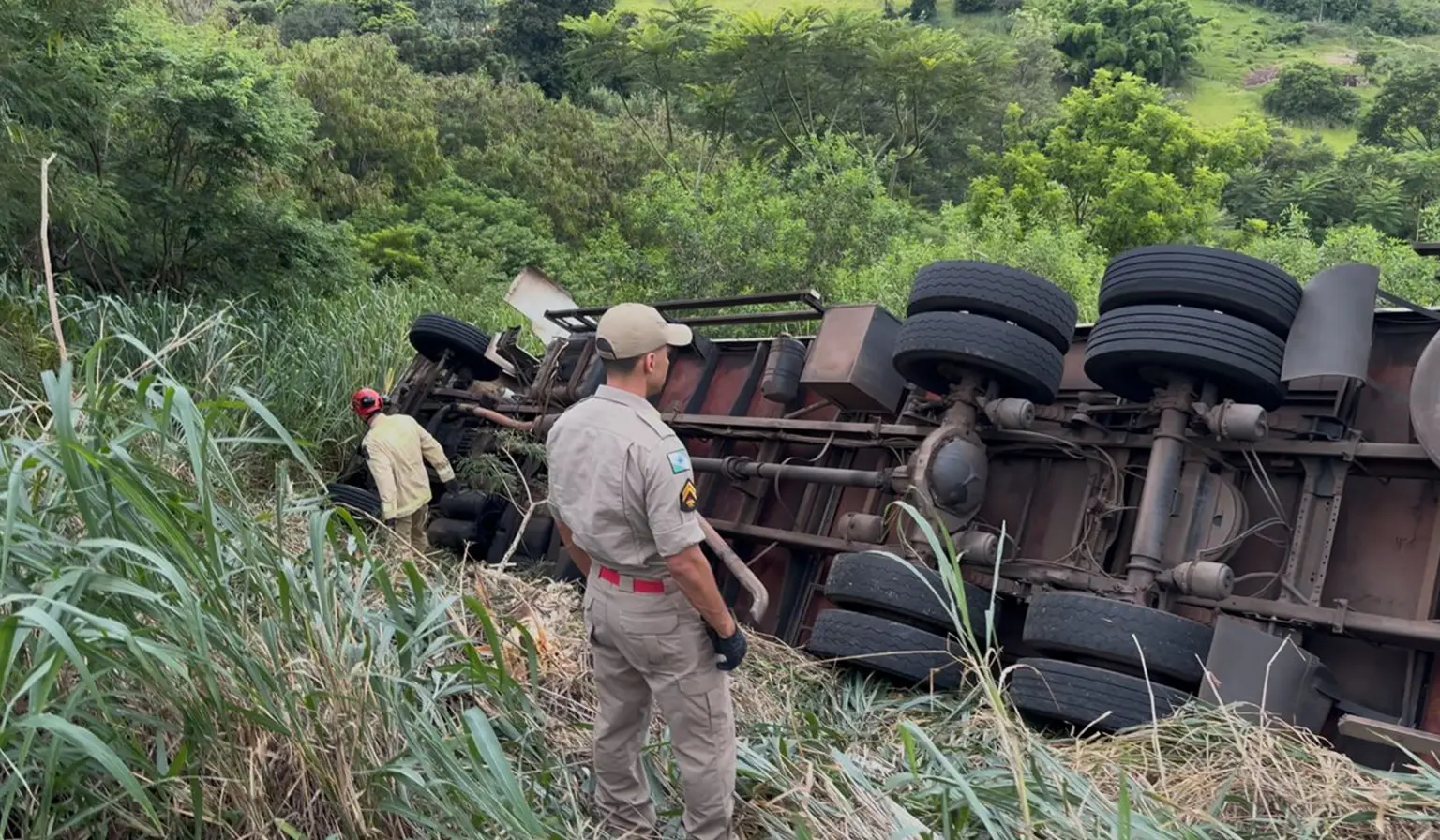 Apesar da gravidade do acidente e da posição final do caminhão no barranco, o fato de o motorista não ter ficado preso às ferragens evitou um resgate mais complexo. A ocorrência foi atendida com segurança pelas equipes de emergência.