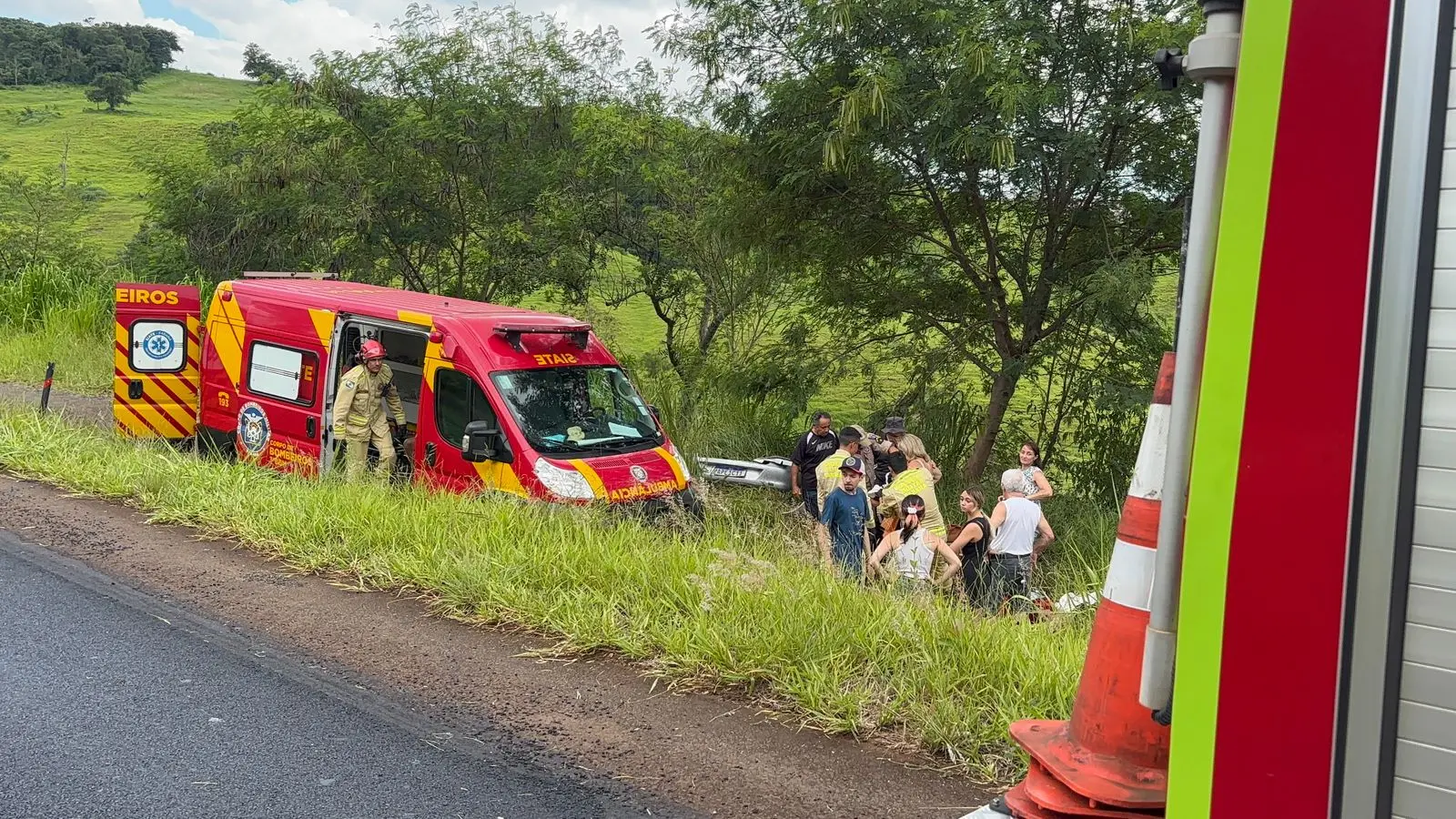 Segundo informações do Corpo de Bombeiros, a ocorrência envolveu um veículo que perdeu o controle em uma curva, capotou sobre a pista e caiu em um barranco às margens da rodovia, parando com as rodas para cima. Socorristas do Corpo de Bombeiros, com apoio do SAMU, da Polícia Militar e da Polícia Rodoviária, foram acionados e se deslocaram rapidamente ao local com ambulância e viatura de resgate.