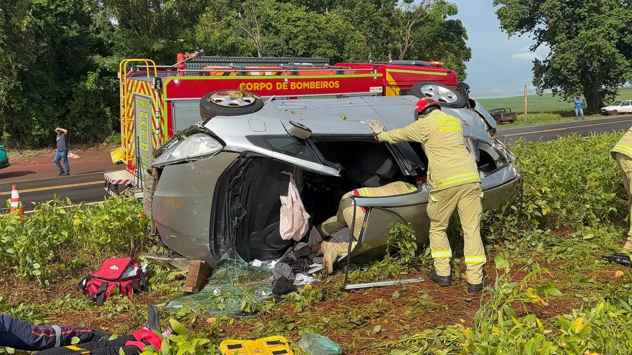 Capotamento na PR 160 deixa três feridos entre Cornélio Procópio e Nova Fátima