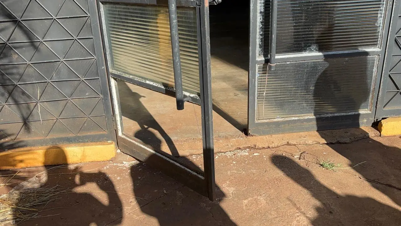 No local, o responsável informou que o espaço foi invadido durante a madrugada. Os criminosos teriam arrombado uma das portas, que estava com o vidro quebrado e o cadeado violado.