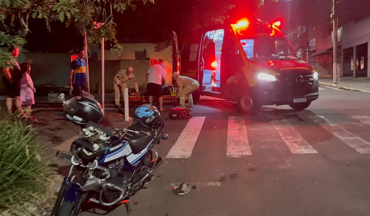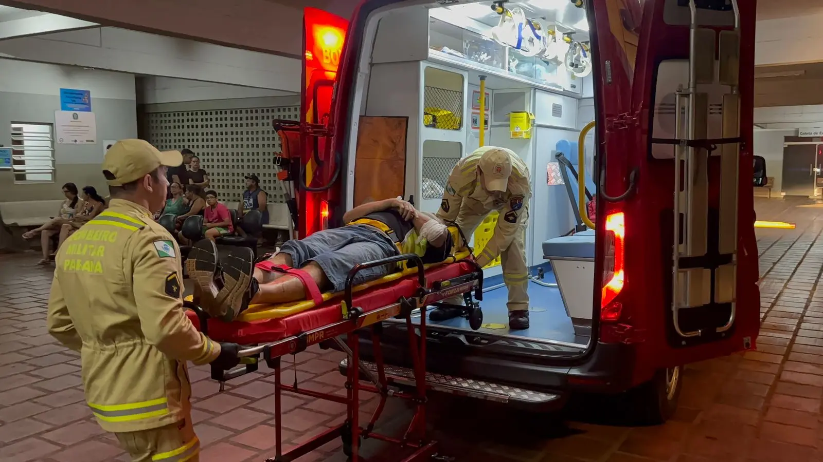 Durante a avaliação, a vítima também relatou dores nos joelhos e no pé direito, levantando suspeita de fratura no membro inferior. De acordo com os bombeiros, a cinemática do acidente foi considerada forte, já que, após a colisão, o motociclista foi arremessado a alguns metros de distância.