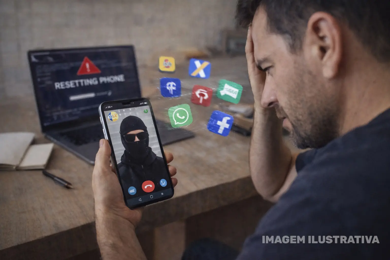 Na sequência, o smartphone travou e iniciou um processo de reinicialização, fazendo com que a vítima perdesse todos os dados do aparelho, incluindo acesso a e mails, aplicativos bancários, aplicativos de mensagens e redes sociais.