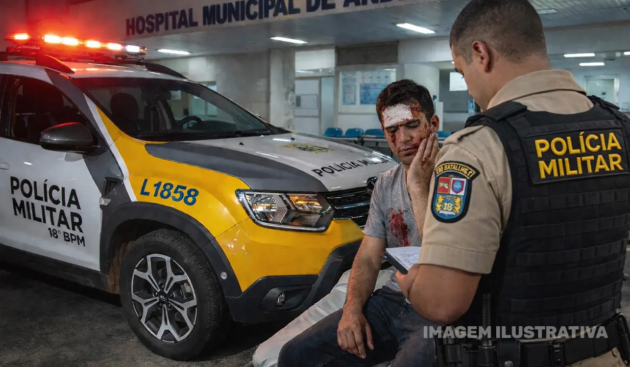 A equipe da Polícia Militar do Paraná deslocou até o Hospital Municipal de Andirá**, onde manteve contato com a vítima, um homem de 35 anos, vítima de agressão.