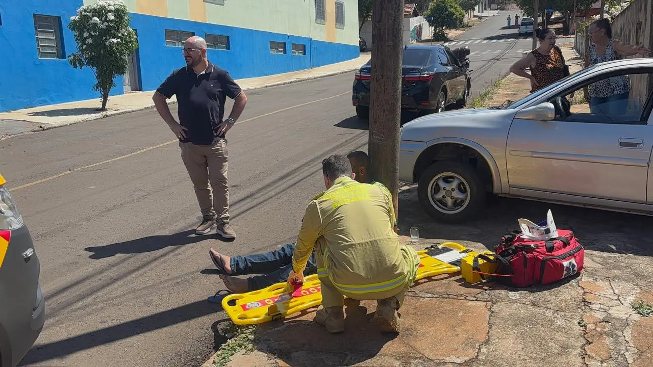 Quando a equipe chegou ao local, o homem estava sentado e sendo amparado por populares, consciente e orientado.