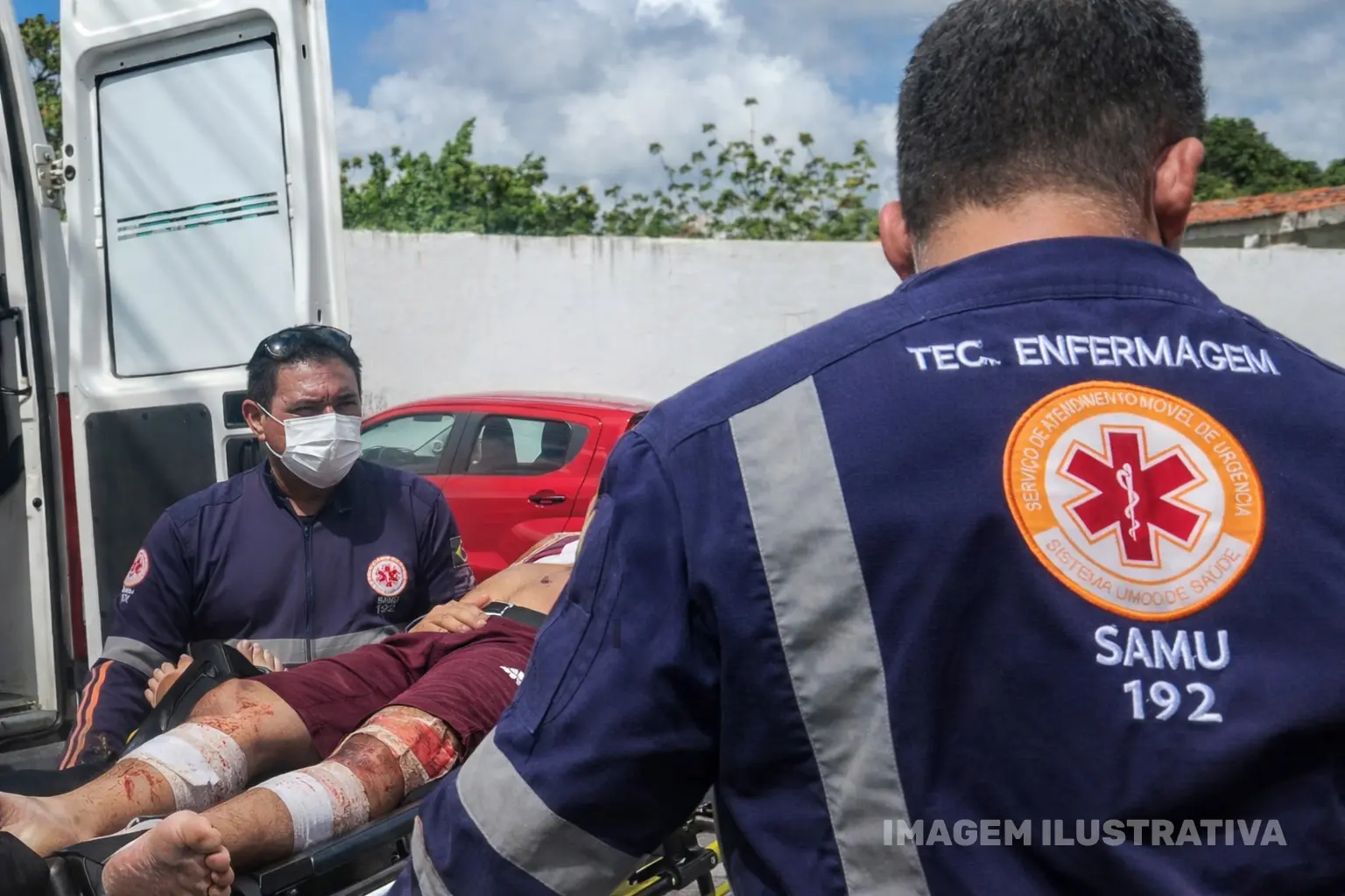 Devido à gravidade dos ferimentos, a vítima foi transferida pelo Samu para outra unidade hospitalar, onde permanece sob cuidados médicos especializados.