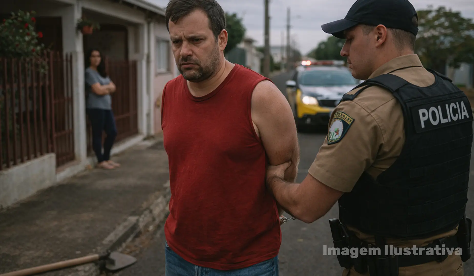 No local, a equipe encontrou o noticiado parado em frente ao imóvel, em posse de uma enxada. Ao receber voz de abordagem, ele largou imediatamente o objeto. Questionado sobre o motivo de estar no endereço, afirmou que teria ido até o local para visitar os filhos.