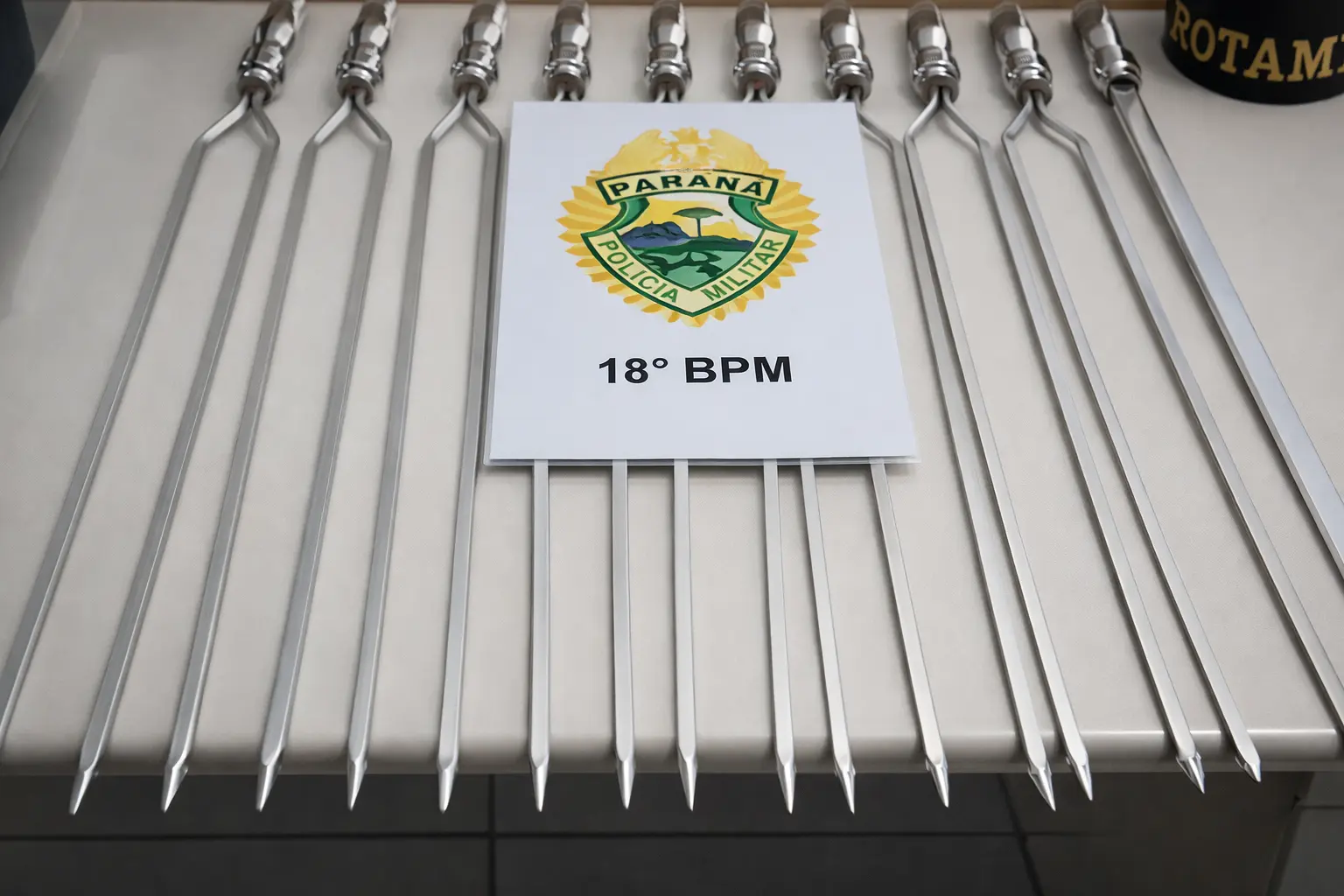 Ao ser questionado sobre a origem dos objetos, o homem afirmou que teria encontrado os itens no lixo. No entanto, os espetos possuíam marcação de preço de R$ 30,00 cada, totalizando 10 unidades, avaliadas em aproximadamente R$ 300,00.