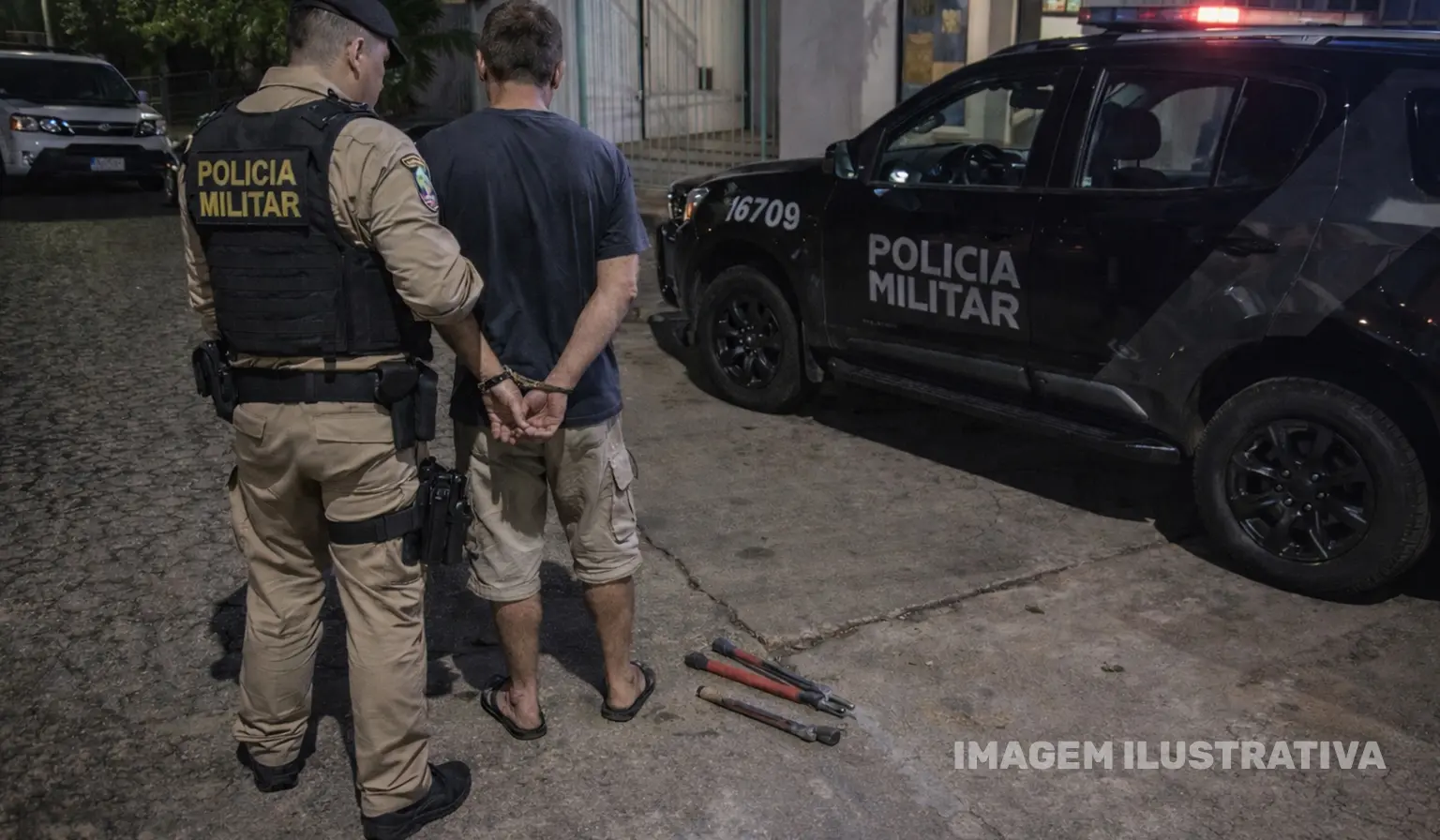 Durante a abordagem, nenhum outro material ilícito foi localizado, sendo as ferramentas apreendidas. Em contato com o responsável pela igreja, os policiais foram informados de que minutos antes da chegada da equipe, o suspeito havia sido visualizado pelas câmeras de segurança entrando no interior do templo com intenção criminosa. As imagens do sistema de monitoramento foram apresentadas e anexadas à ocorrência.