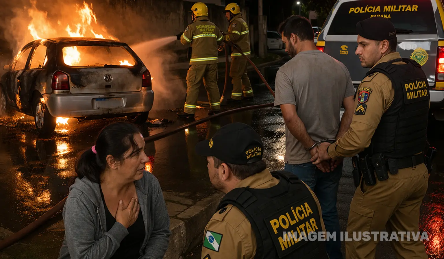 Homem incendeia carro, agride companheira e é preso em Bandeirantes