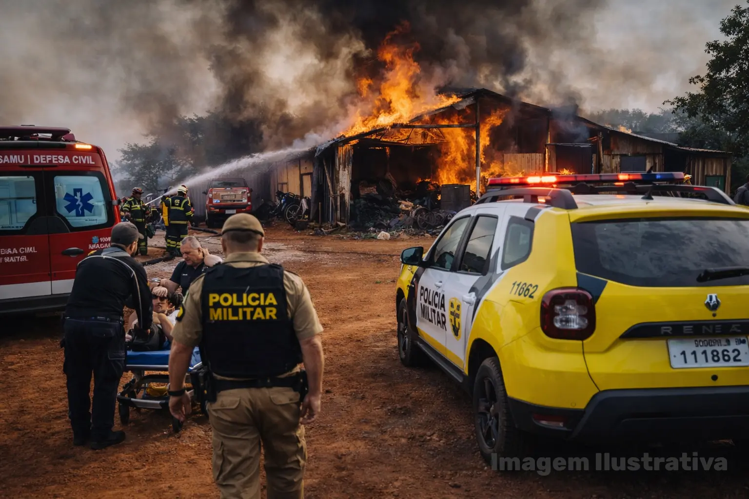 Ao chegarem, os policiais encontraram um barracão completamente em chamas, sendo necessário realizar o isolamento da área para atuação das equipes de combate ao fogo, que conseguiram conter o incêndio.
