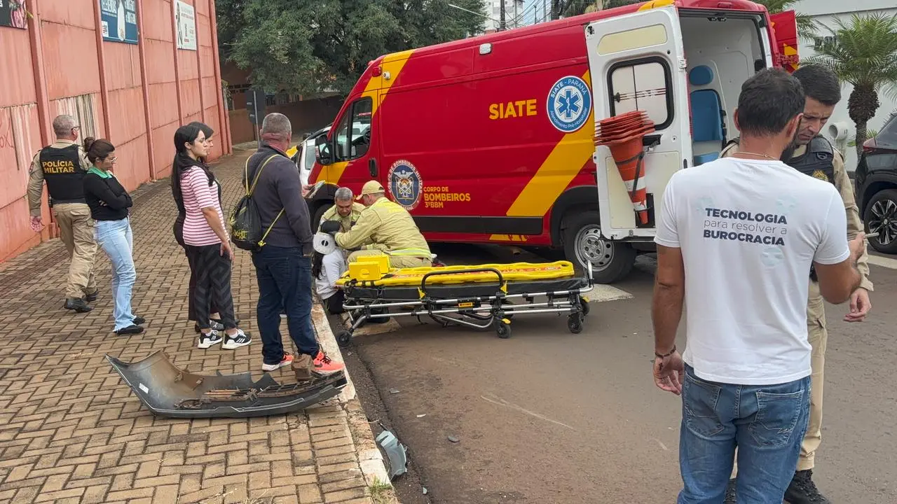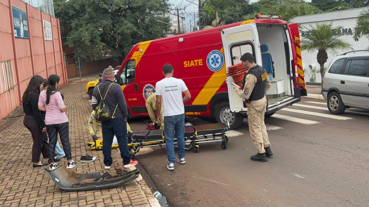 Jovem fica ferida após colisão entre carro e moto na Avenida Paraíso em Cornélio Procópio