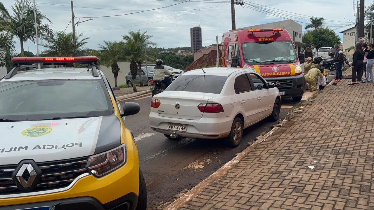 Uma colisão entre carro e motocicleta mobilizou equipes do Corpo de Bombeiros na tarde desta segunda-feira, por volta das 13h30, na Avenida Paraíso, em Cornélio Procópio.