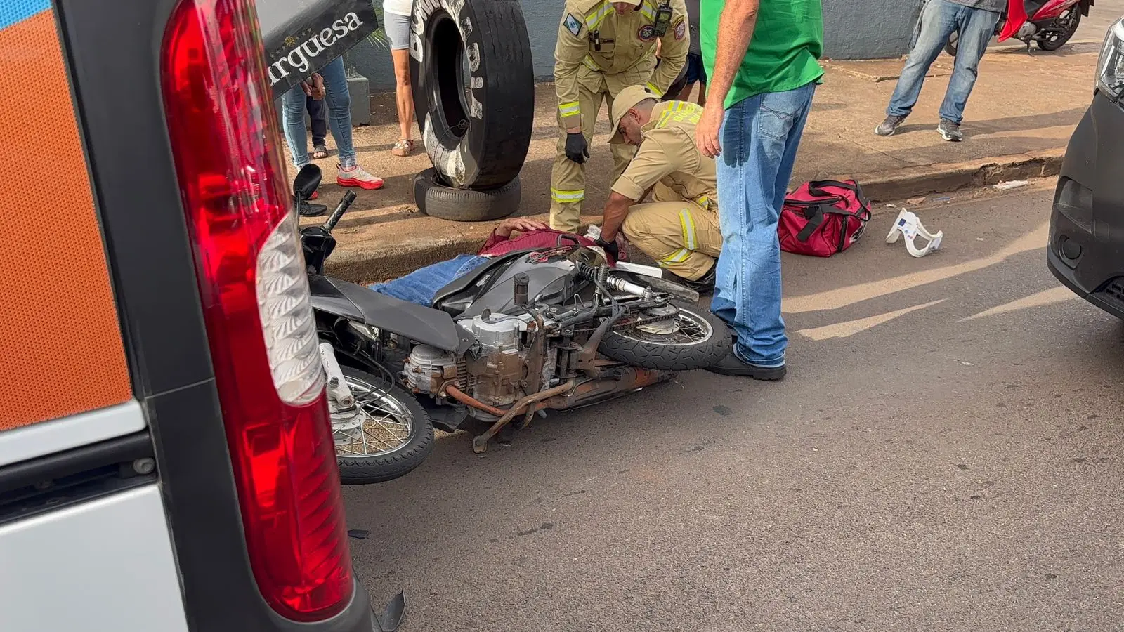 Motociclista fica ferido após colisão com automóvel na rua santa catarina em Cornélio Procópio