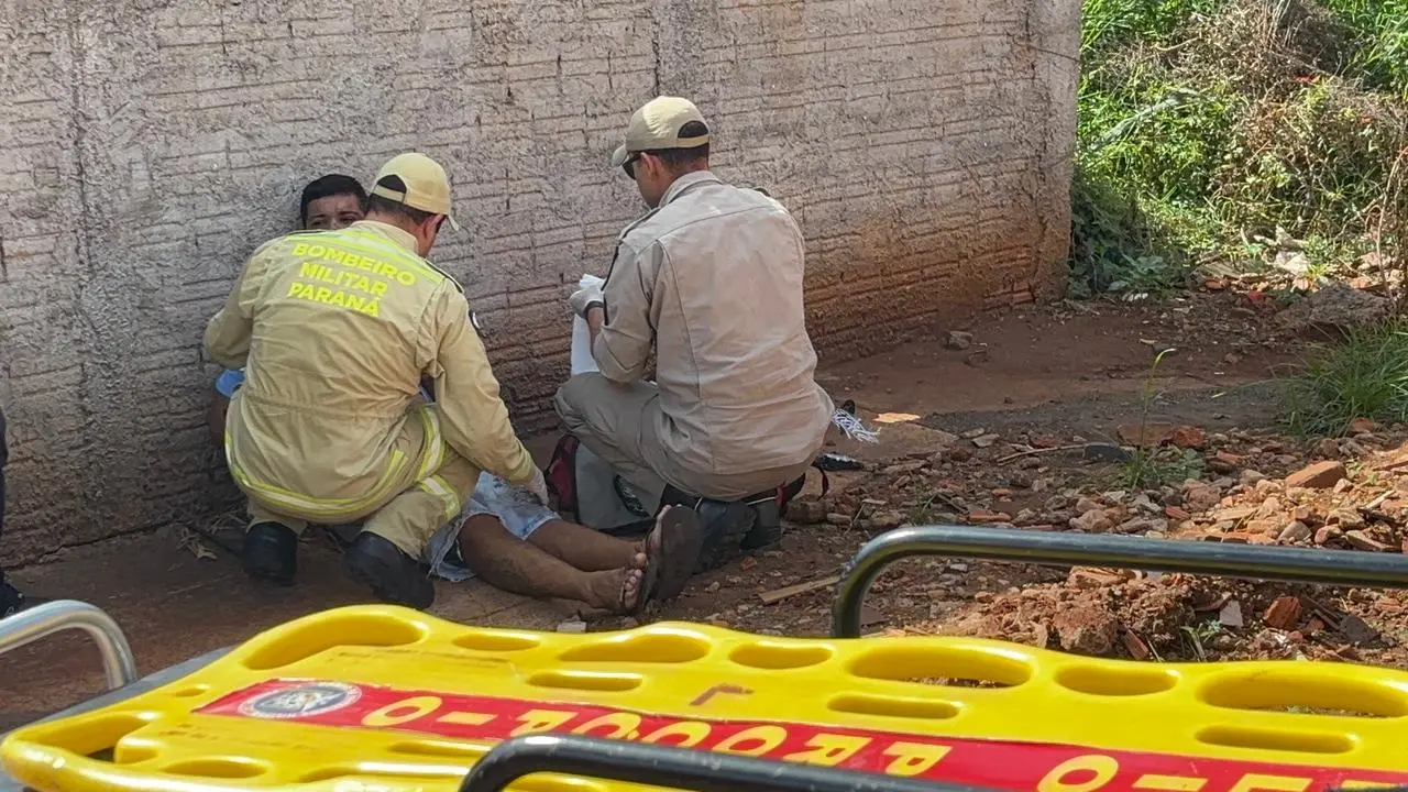 No local, a vítima, um jovem de 22 anos, já se encontrava sentado, consciente e orientado. Apesar de não apresentar fraturas aparentes, ele tinha uma contusão na região da cabeça e uma laceração significativa no peito, com sangramento.