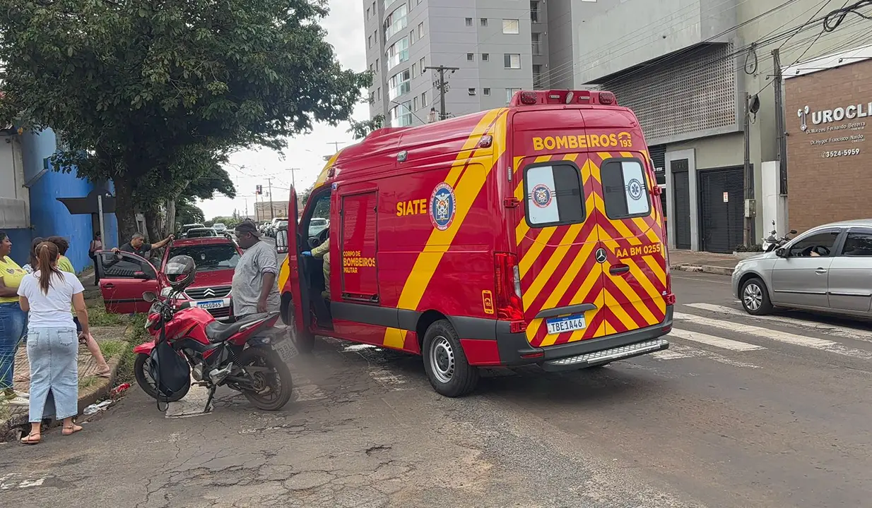Motociclista fica ferido após colisão entre moto e carro no cruzamento das ruas Minas Gerais e Goiás