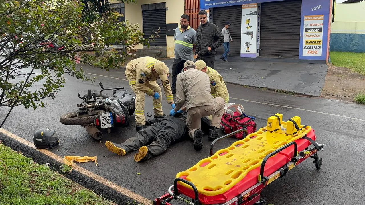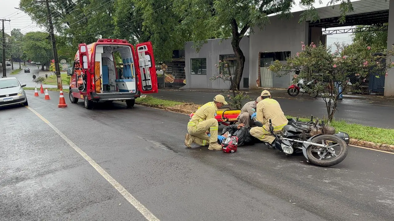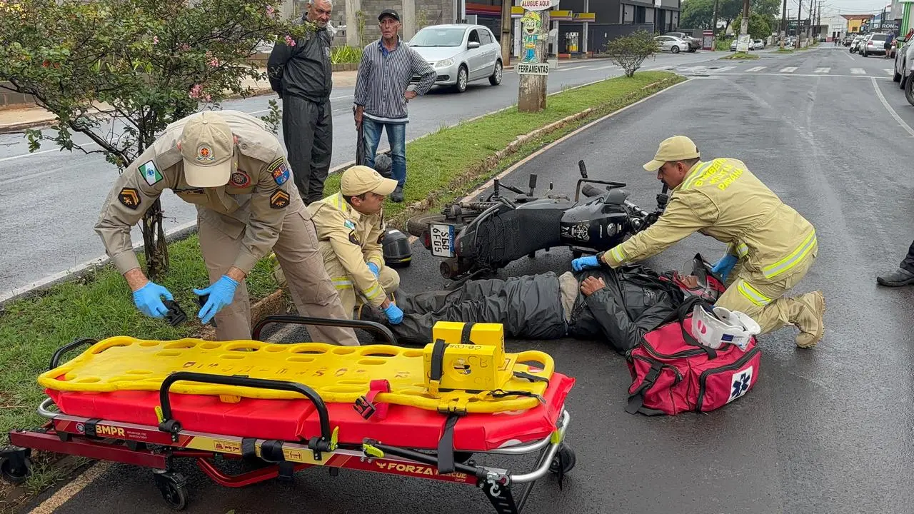 Diante do quadro, a equipe realizou todos os protocolos de atendimento pré hospitalar, efetuou a imobilização necessária e encaminhou o motociclista à Santa Casa para avaliação médica detalhada.