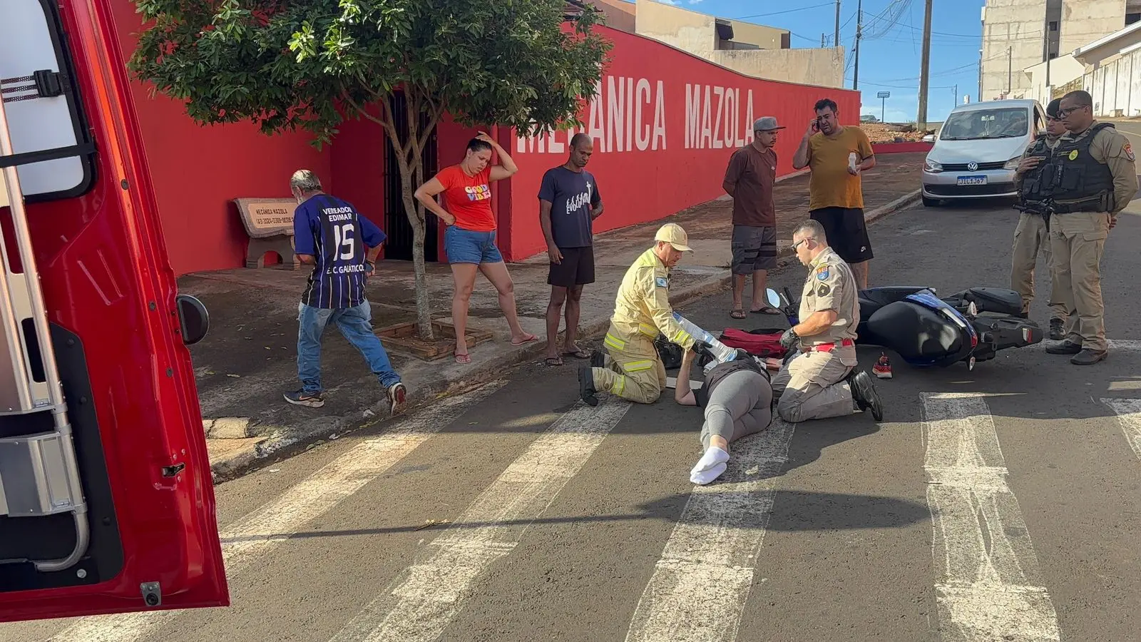 Motociclista fica ferida após queda na Rua Francisco Morato em Cornélio Procópio