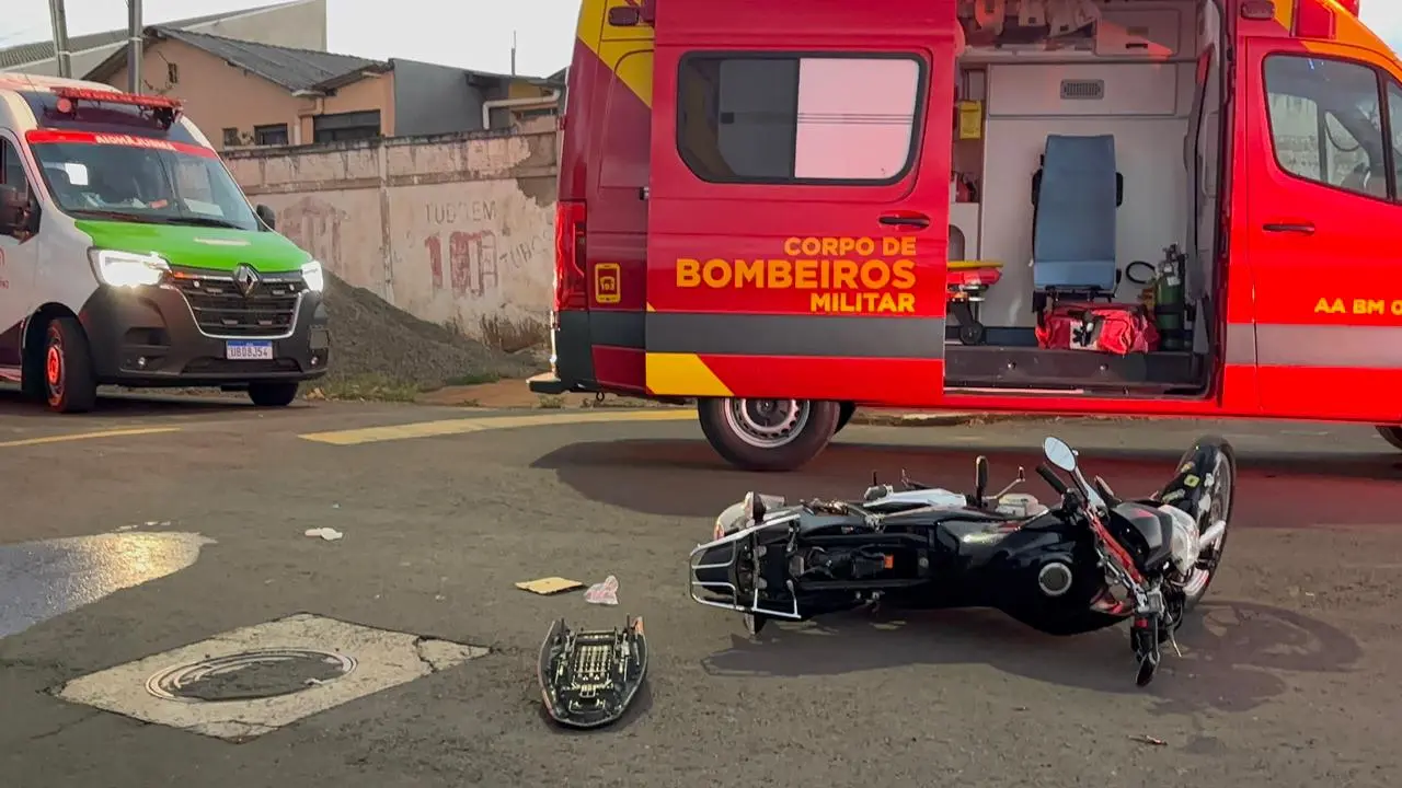Motociclista fica gravemente ferido após colisão com carro no Jardim Panorama