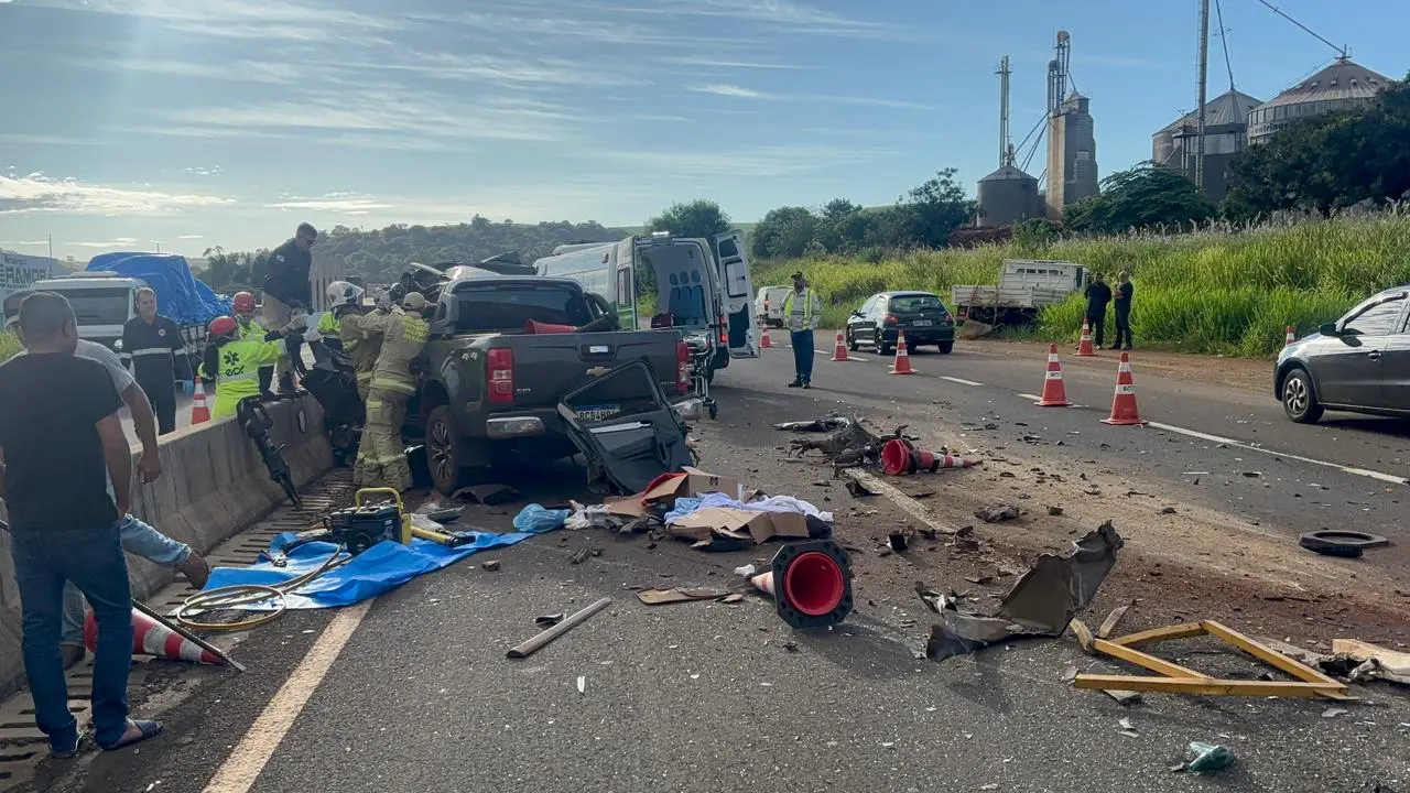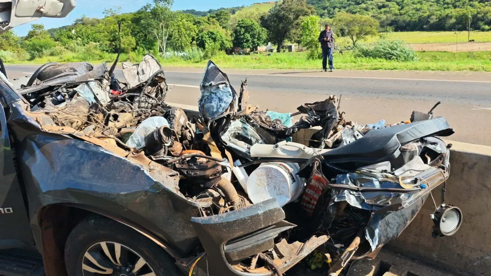 Segundo informações da PRF, o condutor da caminhonete, um homem de 43 anos, teria perdido o controle da direção, invadido a área sinalizada e colidido violentamente na traseira do caminhão.