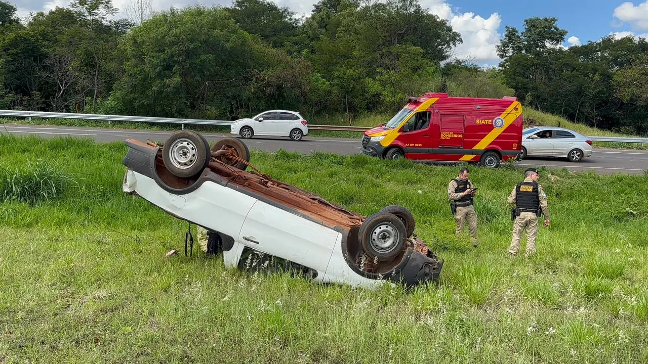 Motorista sai ileso de capotamento na BR-369 após pneu estourar em Cornélio Procópio