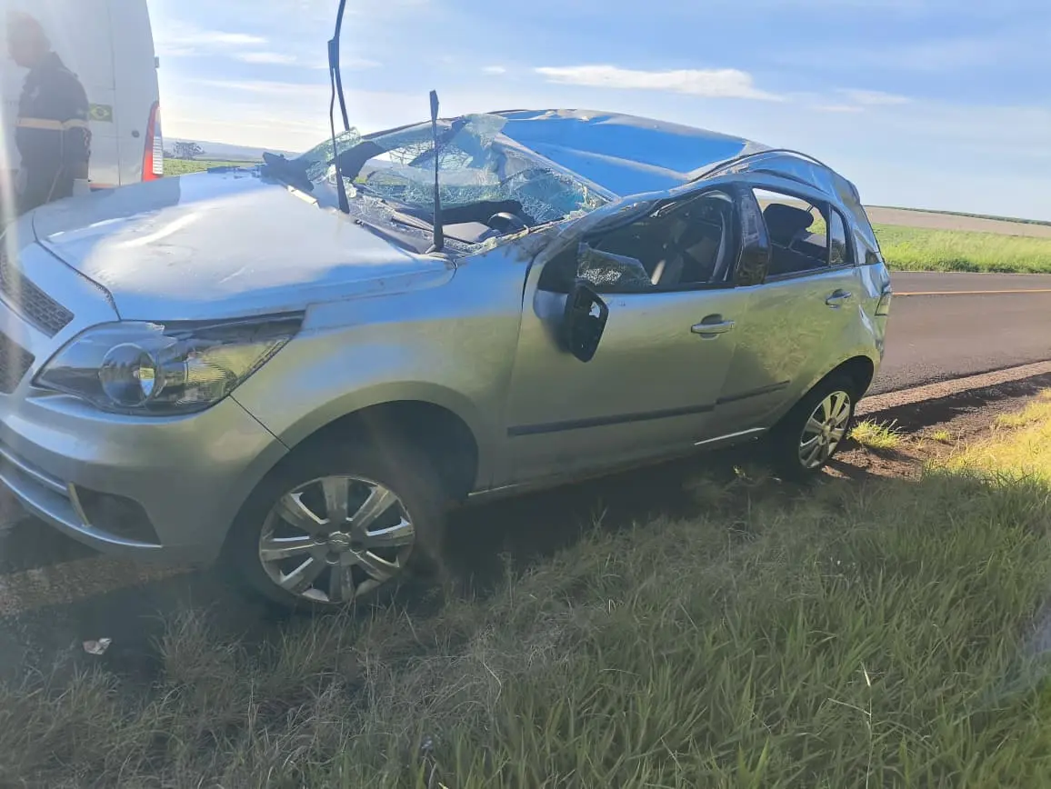 A condutora, uma mulher de 61 anos, sofreu ferimentos e foi socorrida pelo SAMU, sendo encaminhada ao Hospital Municipal de Nova América da Colina. Já três passageiras, de 53, 57 e 62 anos, não se feriram.