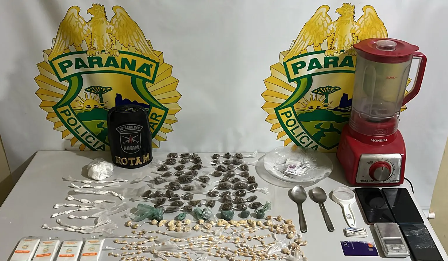 Na noite de segunda-feira (09), por volta das 18h30, uma equipe da ROTAM, da Polícia Militar do Paraná, realizou uma grande apreensão de drogas e a prisão de três suspeitos em Santa Cecília do Pavão.