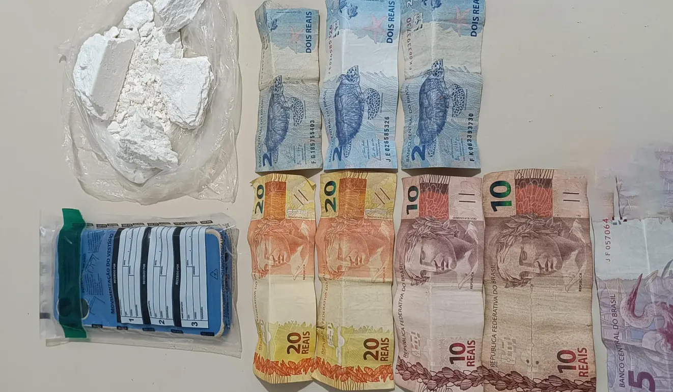 Durante a ação, o próprio abordado informou que portava entorpecente no bolso. Em seguida, foi realizada busca pessoal, sendo localizada uma porção de cocaína pesando aproximadamente 161 gramas, além de um aparelho celular e a quantia de 77 reais em dinheiro.