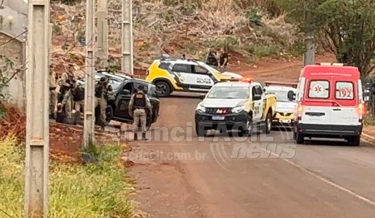 Na sequência, o indivíduo fugiu para uma área de mata, momento em que foram acionadas outras equipes de apoio. Durante a tentativa de abordagem, o suspeito teria apontado uma arma de fogo em direção aos policiais, que reagiram à iminente agressão efetuando disparos.